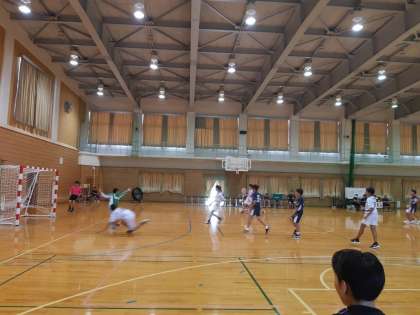 ハンドボール部は、西部中との合同チームで出場しています。山室中に、23対11でリ−ドしています。