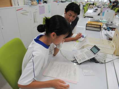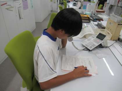 生徒は緊張しながら電話をしています。写真は、昨日の様子です。