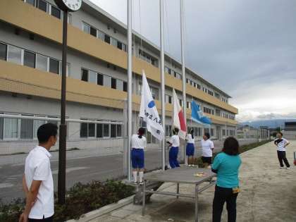 明日に予行練習を控え、今日は開会式の細かな流れを確認しました。ラジオ体操も練習しました。