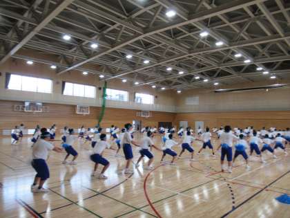 体育館、柔剣道場、ピロティ、前庭と広い場所がたくさんあるため、室内でものびのびと団活動ができます。恵まれた環境に感謝感謝。