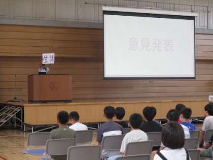続いて、1年学年生徒会による中学校生活についての説明と、代表生徒による意見発表を行いました。
