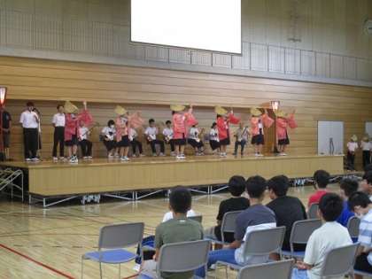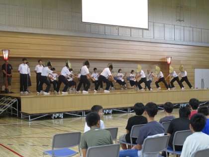 次に、本校ならではの部活動、郷土芸能部による「おわら」の演舞を披露しました。