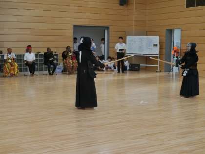 最後は、柔剣道場で、剣道部が型を紹介しました。