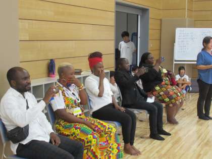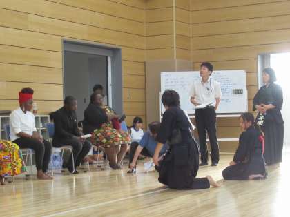 ここでも質問が止まりません。怪我をしないのかという質問に、生徒はすり足で足が痛くなることを話していました。