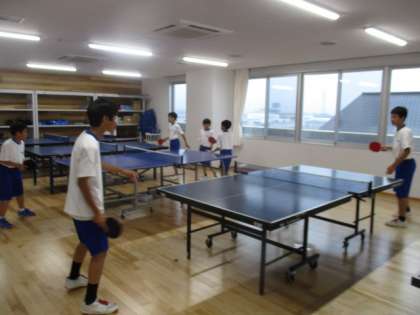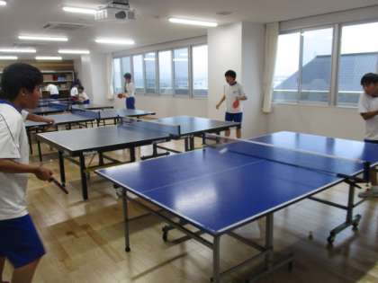 卓球部は、集会室で活動しています。ラリーが続いています。