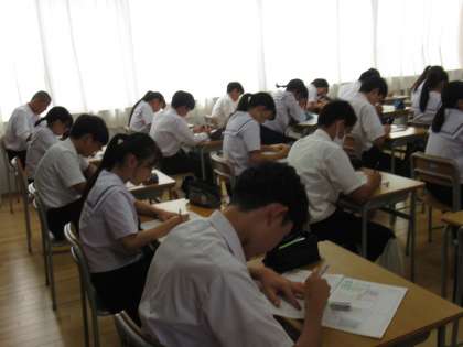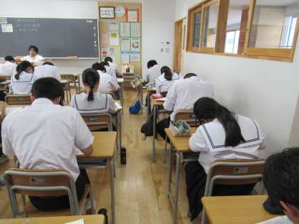写真上・中は、社会の授業の様子です。振り返りの単元テストを行っています。