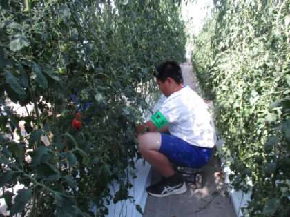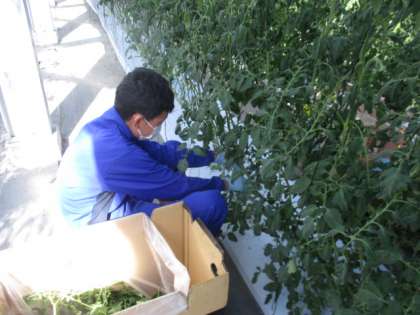 ミニトマトの苗を処理しています。