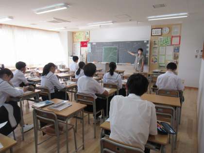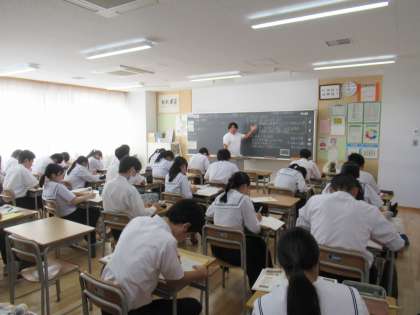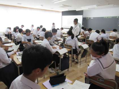 写真中は、社会の授業の様子です。選挙について学習しています。