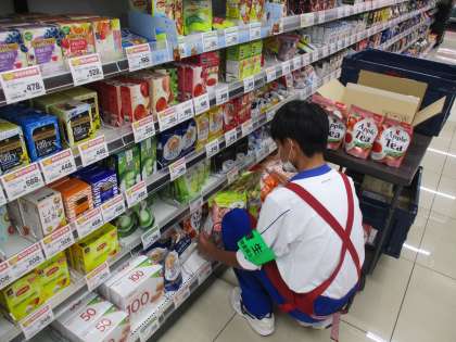 商品を確認したり、並べたりしています。一つ一つ確認しながら、丁寧に作業しています。