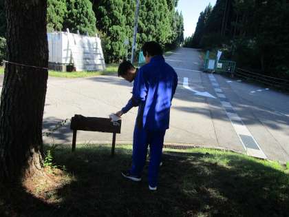 宿泊学習に来ている小学生と一緒にオリエンテーリング活動に参加していました。平地との気温差が多少あり肌寒い中、雄大な自然を満喫しながら様々な活動を続けています。