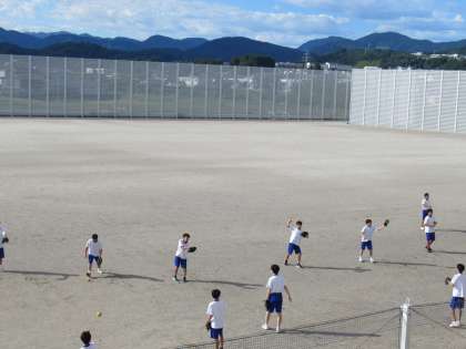 涼しくとても気持ちのよい天候のもと、グラウンドでソフトボール競技に取り組んでいます。