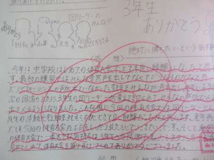 どの学年も教室前や教室内、学年フロアに体育大会の振り返りが掲示してあります。