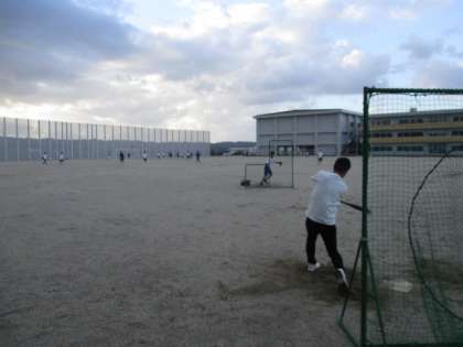ソフトテニス部と野球部の様子です。野球部は、顧問の先生直々のノックを受けています。