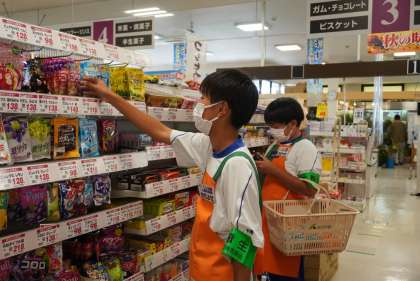 Aコープウィンズ食鮮館の活動の様子です。商品の賞味期限を確認しています。