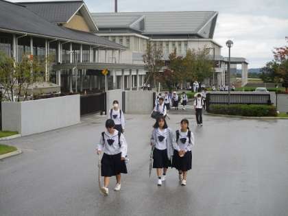 今日の天気は曇りです。夜降っていた雨が上がり、生徒は傘を差さずに登校できました。