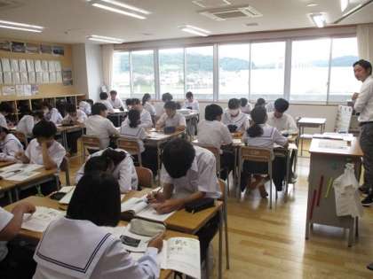 振り返りの場面では、みんな真剣に自分の思いを書いていました。