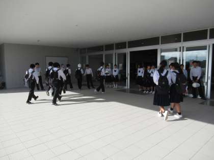 生徒玄関前は、立候補者が選挙運動、挨拶運動を展開中です。さわやかな挨拶で生徒玄関前が活気付いています。