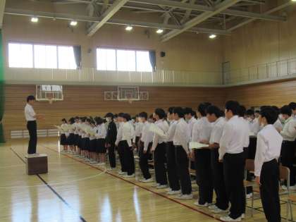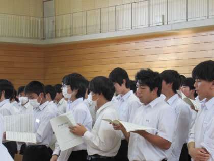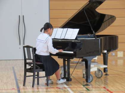 学年合唱の練習をしています。「空を飛べるはず」という曲です。ノリノリで歌っています。空を飛べるかな。