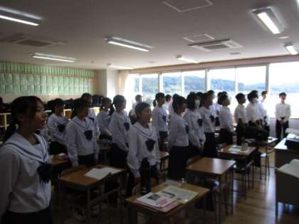 さすがは3年生です。歌声に迫力があり、学校全体に響いています。