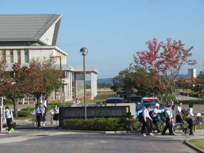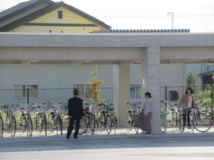 昨日よりも自転車での登校が多いです。広い駐輪場は、まだ余裕があります。