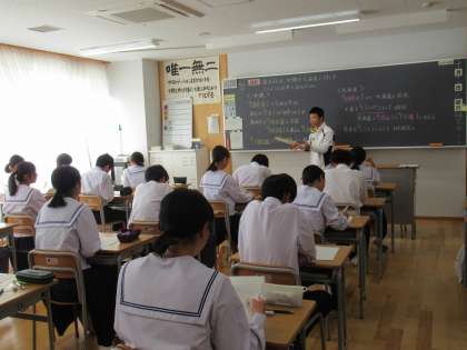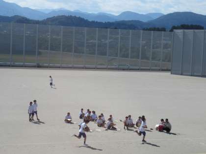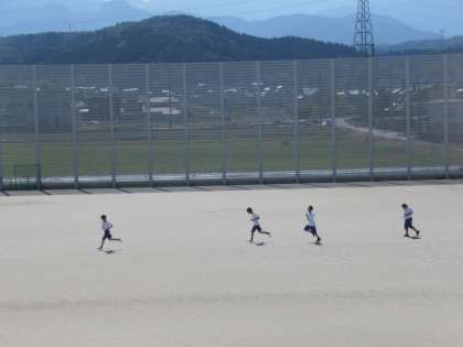 写真中、下は、保健体育の授業の様子です。中間考査終了後の長距離走は辛い!?