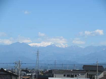 八尾中から見える立山連邦は確かに山頂は白いです。