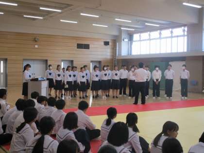 他学年の合唱を聴いたあと、感想を述べたり、アドバイスを交流したりしました。最後の3年生の合唱はやっぱりとても素晴らしく、1、2年生は新たな決意を胸に抱いたことでしょう。