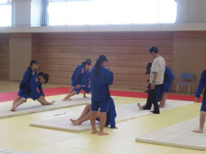 まずは、ストレッチで体をほぐします。「いてててて・・・」という声が響いています。