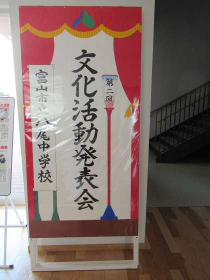来週火曜日は、文化活動発表会です。用務員さんお手製の素晴らしい看板も待ち遠しそうにスタンバイ中です。(写真中)