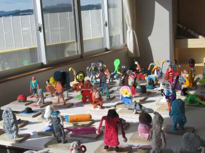 美術の作品も学年室でスタンバイ中です。(写真下)