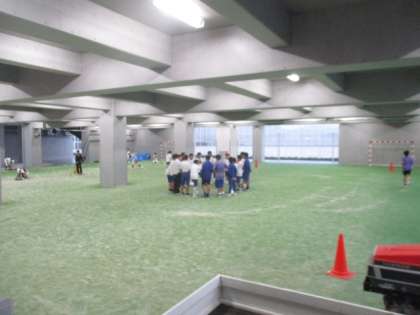 ピロティでは、サッカー部、野球部、陸上競技部が活動しています。