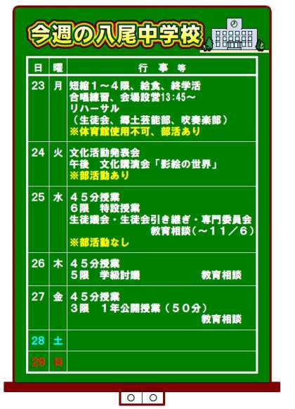 今週は、文化活動発表会があります。芸術の秋を満喫しましょう。