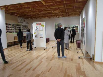学校ギャラリーには、毎月の活動の様子が写真で掲示してあります。サイネージでは、活動の写真をエンドレスで放映しています。