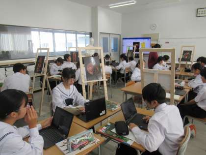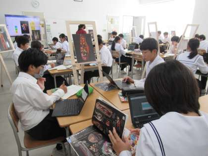 班ごとに異なる仮面を見て、その仮面に込められた願いを考えています。