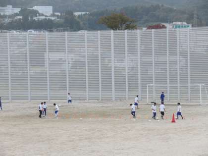 グラウンドでは野球部、サッカー部、陸上競技部がのびのびと活動しています。日暮れが早いので、短期集中です。