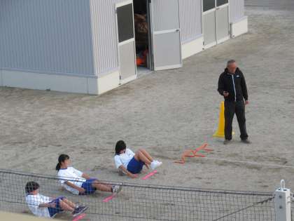 グラウンドでは野球部、サッカー部、陸上競技部がのびのびと活動しています。日暮れが早いので、短期集中です。