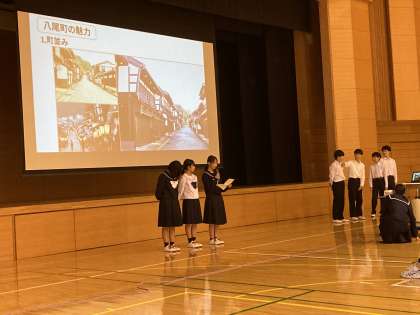 今度は、八尾中の番です。まず、八尾中、八尾町の紹介をしました。
