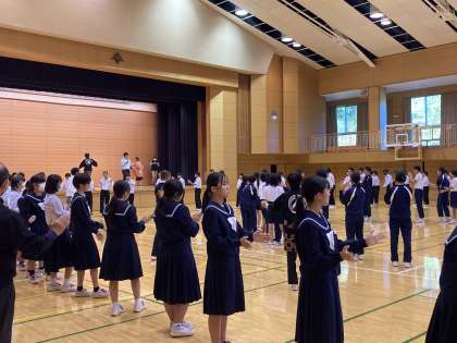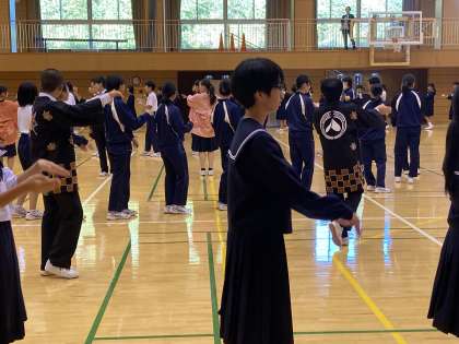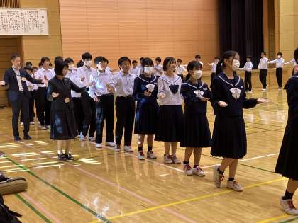 次に、二重の大きな円になり、おわら踊りを全員で踊りました。