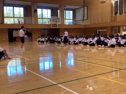 あっという間に時間が過ぎ、帰校する時間となりました。代表生徒が互いに挨拶を交わし、平中学校を後にしました。