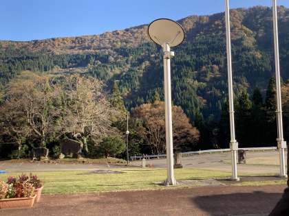 すぐそばに大きな山があり、木々が色付きとても綺麗です。自然に囲まれた素敵な学校、伝統文化を継承する素敵な生徒、共通点がたくさんありましたね。
