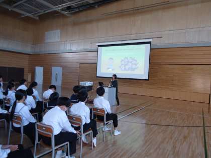 「中学生に必要な食事について考えよう」という題目で、栄養士の先生からの講話をいただきました。