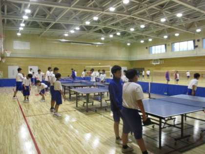 体育館では、卓球部、バドミントン部、バレーボール部が所狭しと活動しています。