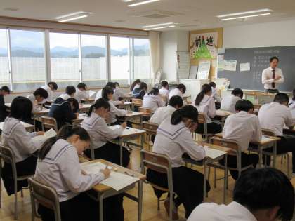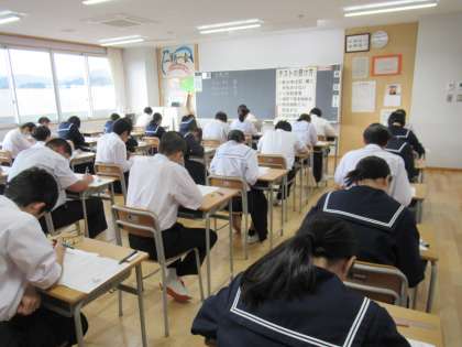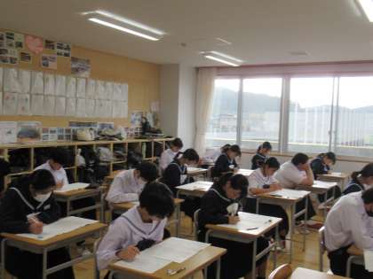 2年生は、国語、英語、理科の順です。真剣に問題に取り組んでいます。