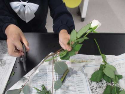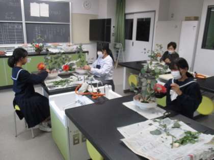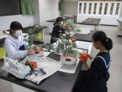 華道部の様子です。講師の先生から教わりながら、作品をつくりあげていきます。