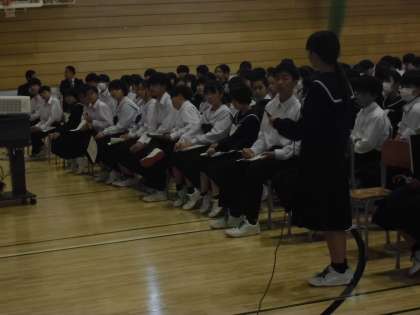 11月9日(木) 1・2年生 働く人に学ぶ講演会 公開日 2023/11/09 更新日 2023/11/09 八尾中学校のページ 5・6限目に、1・2年生で「働く人に学ぶ講演会」を行いました。 青年会議所から4名の講師の方をお招きし、体育館と八尾コミュニティセンターの2会場でそれぞれ講演していただきました。 中身の濃い、有意義な時間となりました。