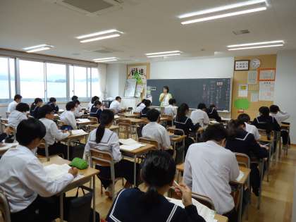 写真下は、国語の授業の様子です。古文 「仁和寺にある法師」を読み取っています。