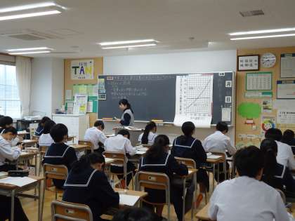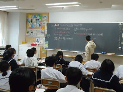 写真上は、社会の授業の様子です。ヨーロッパの工業について学習しています。