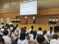 八尾のおわらが大好きで、今年、おわらを見に行けなかったから、富山市中学校文化祭で見ることができてうれしかったということで、郷土芸能部に花束をくださった方がおられました。