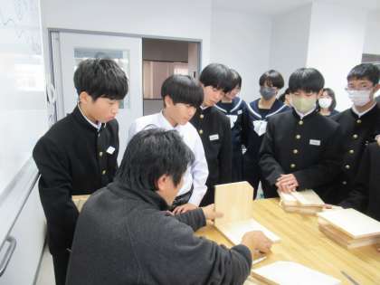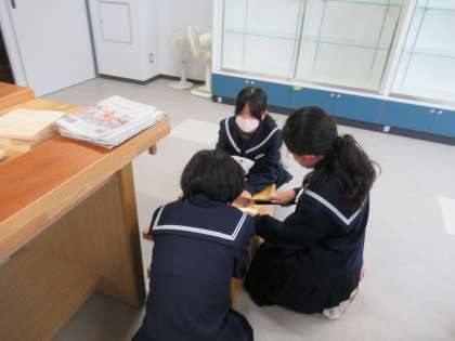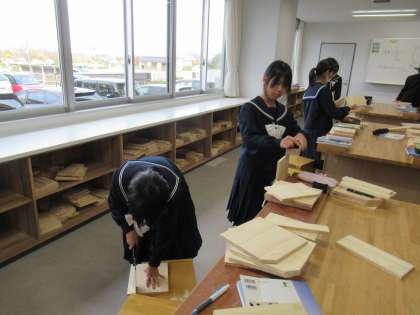 本棚づくりも着々と進んでいます。今日は釘打ちの説明を聴いている生徒もいます。