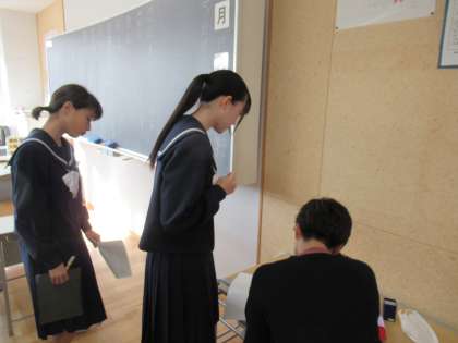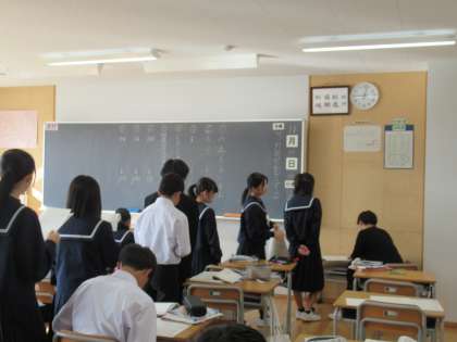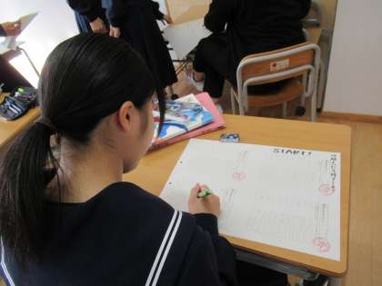 古典的かなづかいの問題にチャレンジ中です。10問終わるごとに、先生にチェックを受けます。合格のスタンプをもらうと、次の10問に進みます。